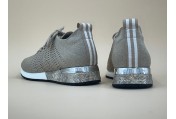 La forme à peine effilée montée sur une semelle légèrement compensée affiche une allure féminine et dynamique. Ce qu’on apprécie tout particulièrement sur la INES, c’est cette facilité à l’enfilage grâce à cette matière crochetée qui la rend stretch: inutile de défaire les lacets!. La matière s’adapte avec harmonie à la cheville, elles seront donc parfaites avec les robes. L’accessoire argenté au talon rehausse l’ensemble et l’enrichi. C’est la basket idéale pour accompagner vos journées remplies avec énergie et esthétique.