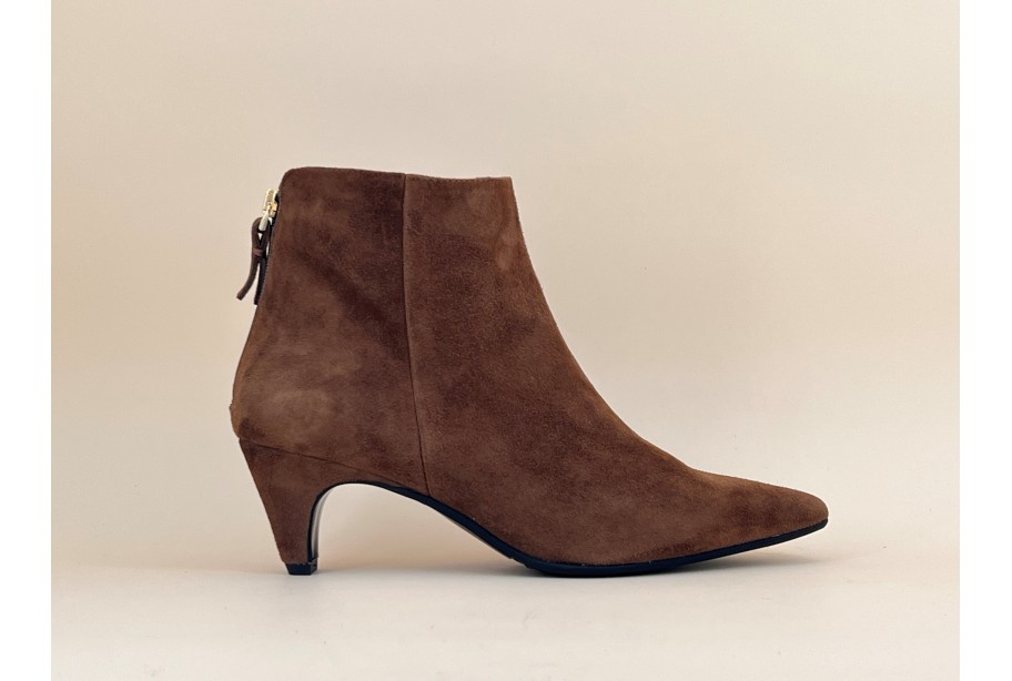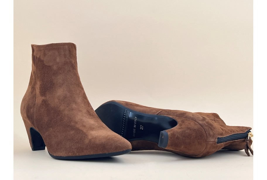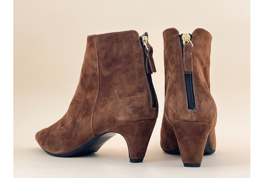 Perchés sur leur talon virgule, les low boots 5570 d'EVALUNA affirment leur style à l'italienne. Cette hauteur de tige est toujours d'une évidente élégance. Elles soulignent avec féminité une tenue simple telle le combo jean/chemise, tout comme elles peuvent apporter allure et attitude à une silhouette plus féminine. Elles s'enfilent aisément grâce à leur zip arrière. On hésite franchement entre la couleur chaude camel et le profond bleu marine. Et vous, laquelle préférez-vous?