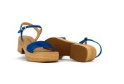 Nu-pieds japonisant WEEK-END. Malgré son épaisseur de semelles très tendance, ce modèle est d'une grande légèreté. La démarche est faciltée par la forme balancier de la semelle. bout légèrement carré. Noous l'aimons tellement que nous vous le proposons en trois coloris: Velours mandarine, Velours bleu et velours beige.