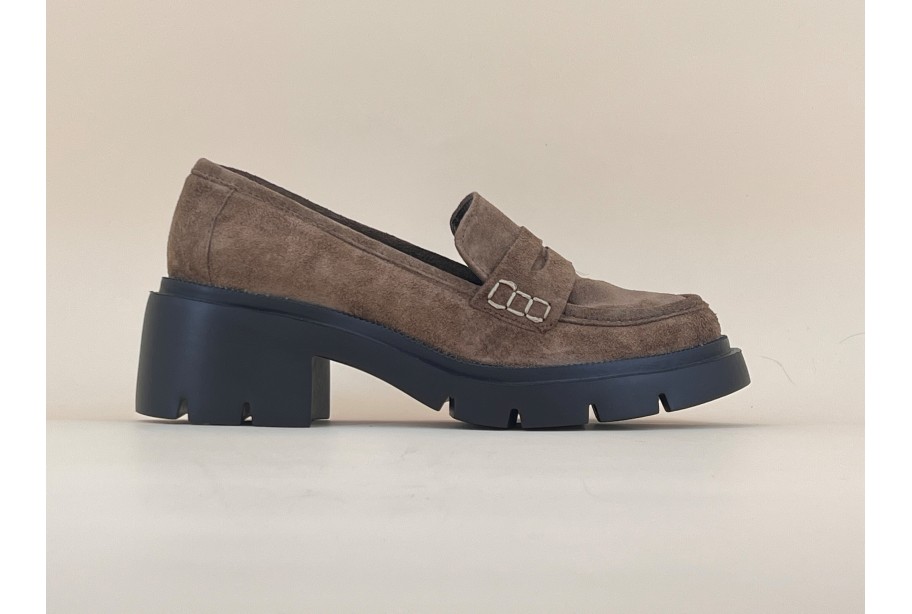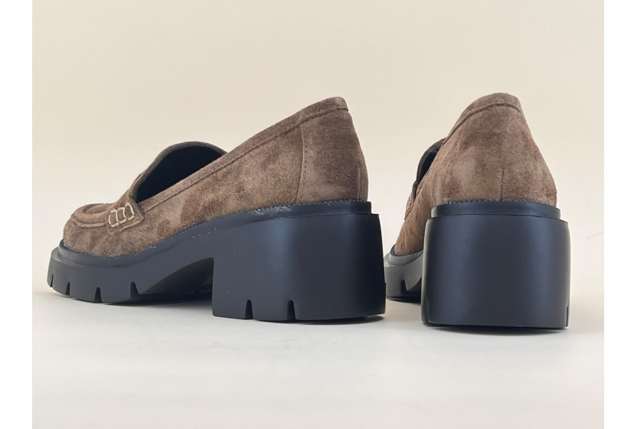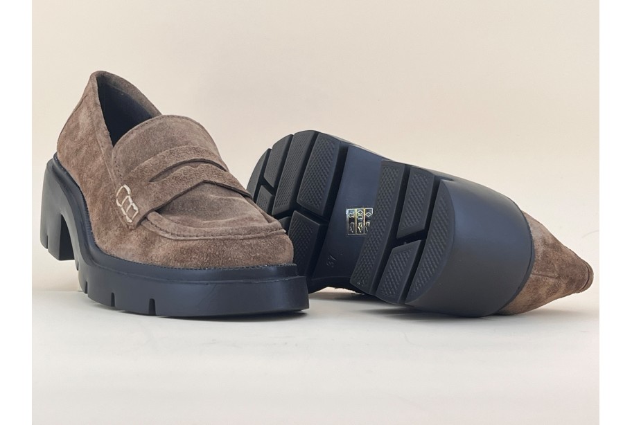 Mocassin en nubuck beige sur semelle épaisse en micro très légère. Ce modèle à la tige classique et revisité sur une semelle tendance, saura s’accorder à toutes les pièces de votre dressing!