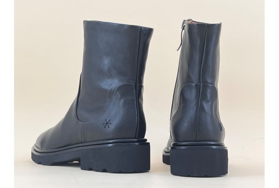 Bottine zippée MAM’ZELLE en cuir lisse noir. Semelle en micro très légère. On aime son esprit épuré sur semelle sport mais avec un bout légèrement effilé et une tige étroite.