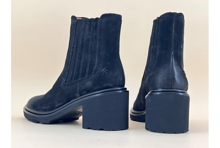 Du haut de leur talon carré, ces bottines NICAM de la marque Mam'zelle s'affiment par leur look à la fois sport et féminin. Avez-vous remarqué cette belle finition sur le haut de la tige? Cette soigneuse découpe mettra en valeur vos mollets, c'est une certitude! On adore leur cuir mat qui leur confère cet aspect brut légèrement cirée en bout de forme. De part leur facile enfilage, vous serez rapidement prête à piétiner les rues de la ville. Nous vous les proposons en version noire ou cigare.